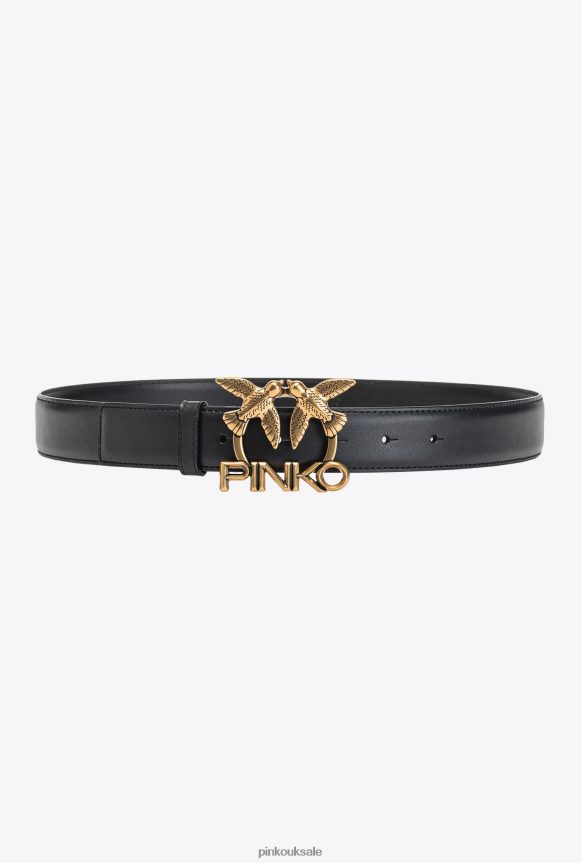 Belts | Pinko Leather belt with Love Birds logo BLACK-ANTIQUE GOLD FTB64L974 Pinko Uk