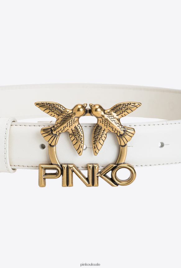 Belts | Pinko Leather belt with Love Birds logo WHITE-ANTIQUE GOLD FTB64L972 Pinko Bags Uk