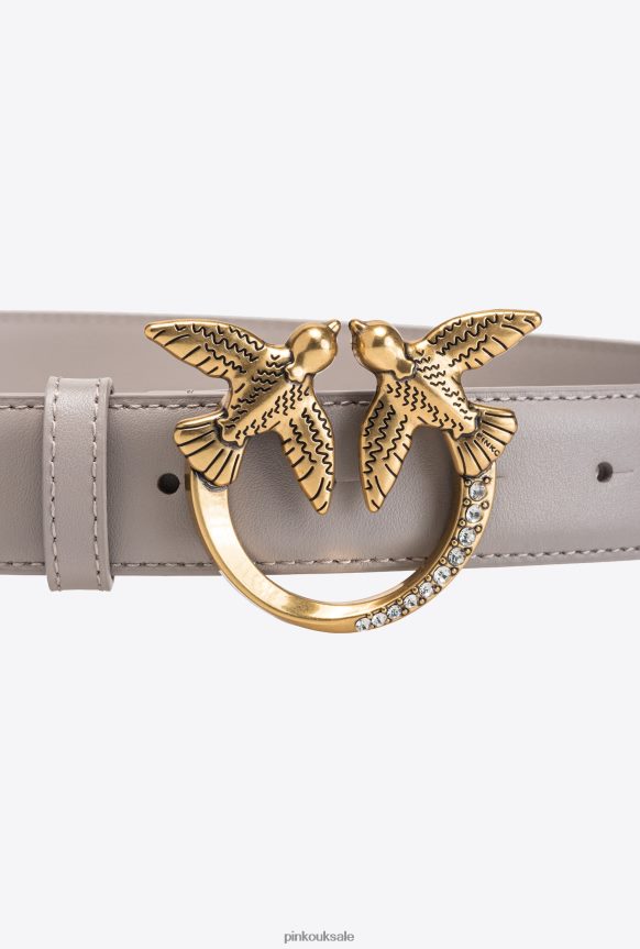 Belts | Pinko Love Birds belt with bejewelled buckle PENGUIN GREY-ANTIQUE GOLD FTB64L967 Pinko Dress Uk