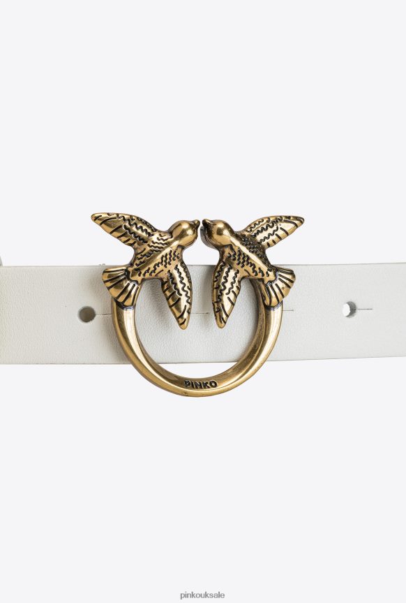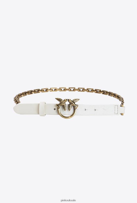 Belts | Pinko Love Birds belt with chain WHITE-ANTIQUE GOLD FTB64L1052 Pinko Uk