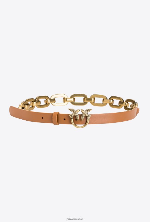 Belts | Pinko Love Birds belt with large chain COGNAC-ANTIQUE GOLD FTB64L1061 Pinko Uk