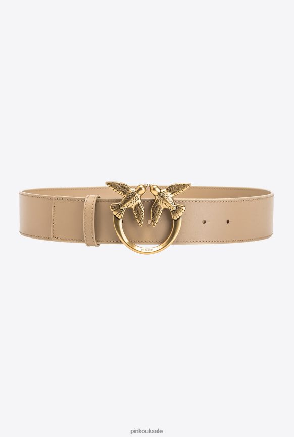 Belts | Pinko Love Birds high leather belt SAND-ANTIQUE GOLD FTB64L1012 Pinko Dress Uk
