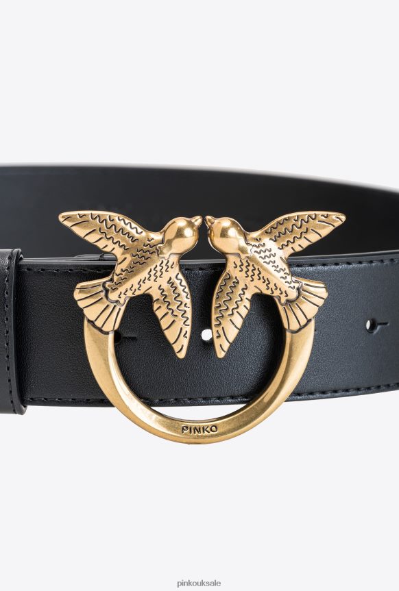 Belts | Pinko Love Birds leather belt BLACK-ANTIQUE GOLD FTB64L992 Pinko Uk