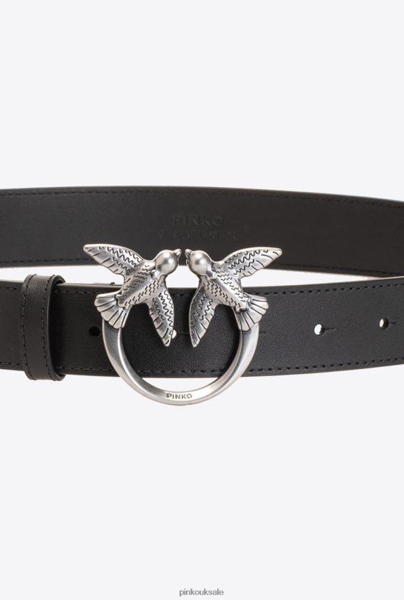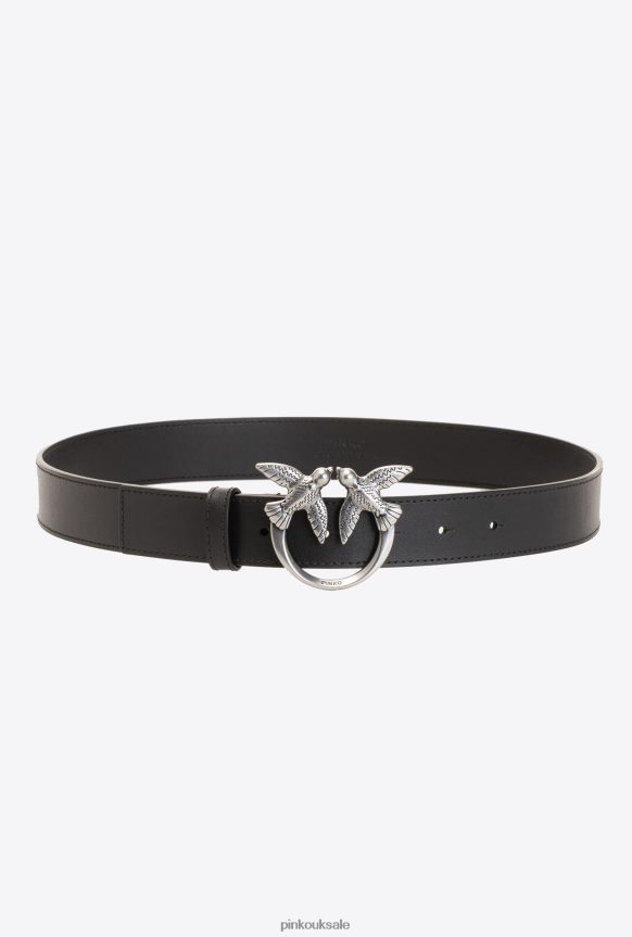 Belts | Pinko Love Birds leather belt BLACK-OLD SILVER FTB64L1006 Pinko Dress Uk