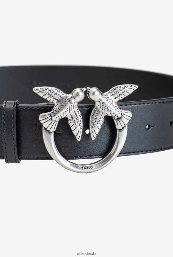 Belts | Pinko Love Birds leather belt BLACK-OLD SILVER FTB64L995 Pinko Uk