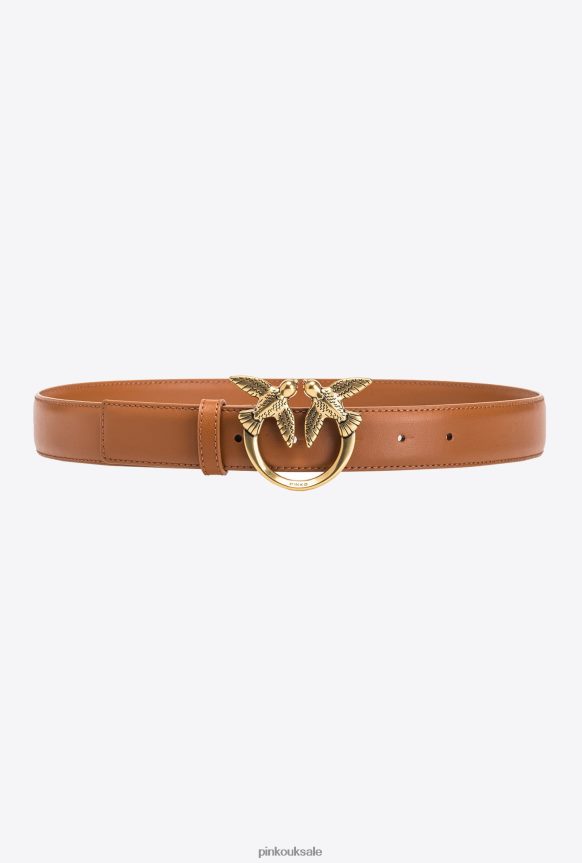 Belts | Pinko Love Birds leather belt COGNAC-ANTIQUE GOLD FTB64L1004 Pinko Uk
