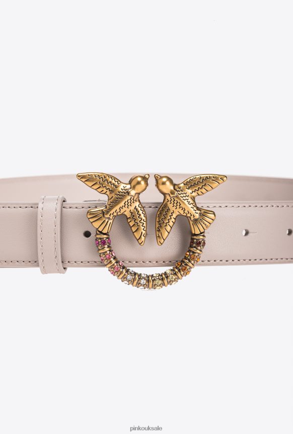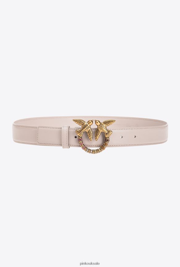 Belts | Pinko Love Birds leather belt PENGUIN GREY-ANTIQUE GOLD FTB64L969 Pinko Bags Uk