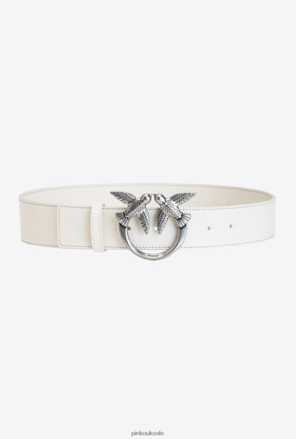 Belts | Pinko Love Birds leather belt WHITE-OLD SILVER FTB64L990 Pinko Bags Uk