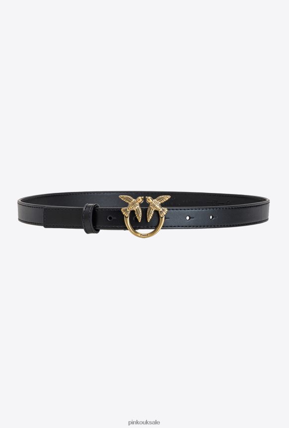 Belts | Pinko Love Birds thin leather belt BLACK-ANTIQUE GOLD FTB64L1028 Pinko Uk