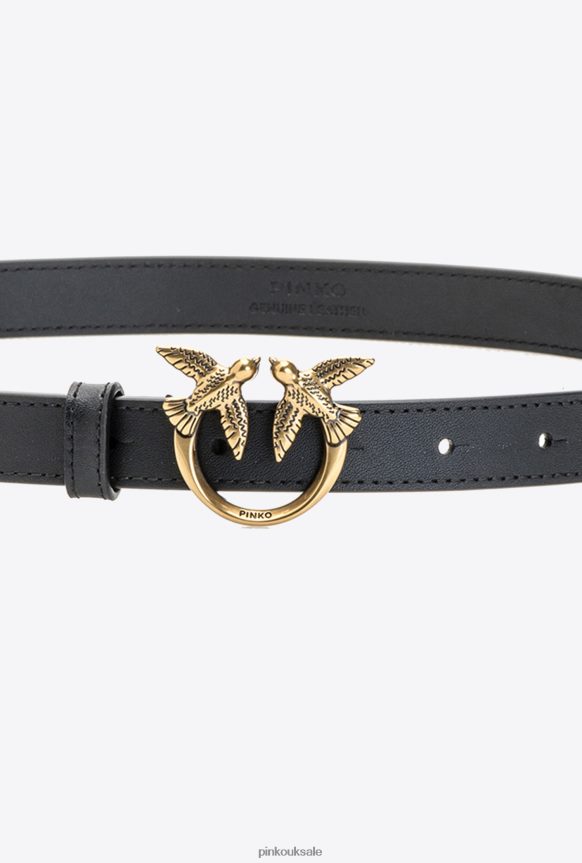 Belts | Pinko Love Birds thin leather belt BLACK-ANTIQUE GOLD FTB64L1032 Pinko Bags Uk