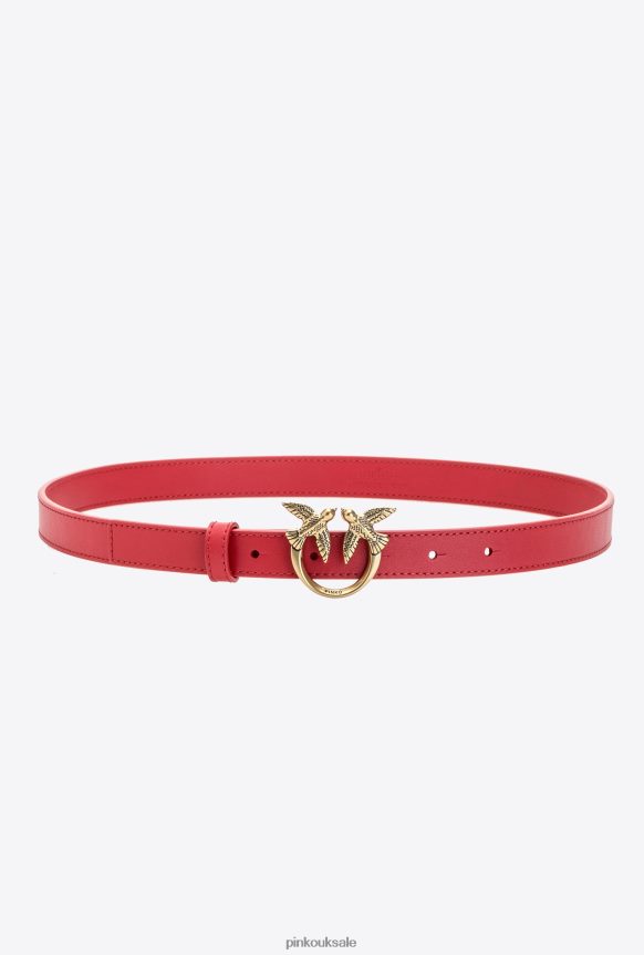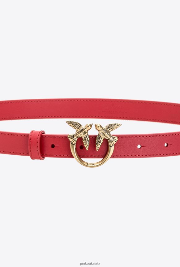 Belts | Pinko Love Birds thin leather belt RED-ANTIQUE GOLD FTB64L1034 Pinko Uk
