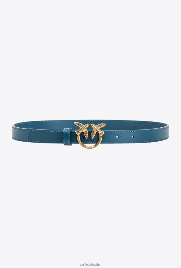 Belts | Pinko Love Birds thin leather belt TEAL-ANTIQUE GOLD FTB64L982 Pinko Dress Uk