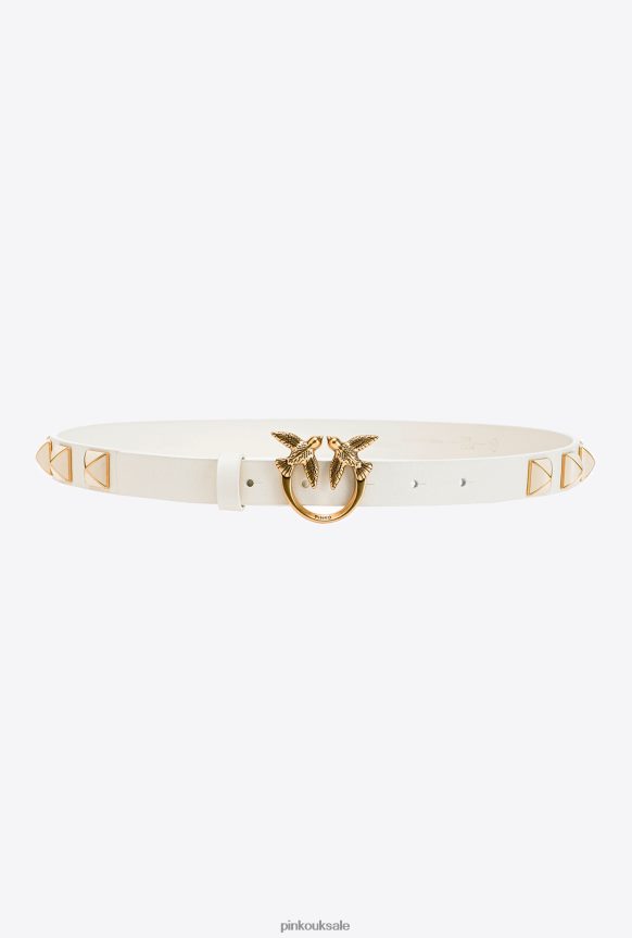 Belts | Pinko Thin Love Birds belt with studs WHITE-ANTIQUE GOLD FTB64L986 Pinko Uk