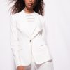 Feminine blazer in stretch linen fabric. Cinched at the sides, lapel collar, long sleeves with buttons at the end, and pockets with flap. Lined. Single-breasted and fastened with one button. – Model is 175cm tall and wears a size 40.