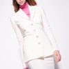 Feminine blazer with a snug fit on the sides, in scuba-effect flowing stretch technical viscose. Lapel collar, long, snug-fitting sleeves and welt pocket at the front. Gathered at the sides, where the jacket has a snug fit. Single-breasted with button fastening at the front.