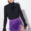Flowing shirt in silk-blend crepe de Chine. Classic collar, long sleeves with cuff, small patch pockets on the front and pleat in the middle on the back. Tonal button fastenings. This piece is made from material – certified throughout the production chain – from forests that are managed in accordance with sustainability principles. – Model is 175cm tall and wears a size 40.