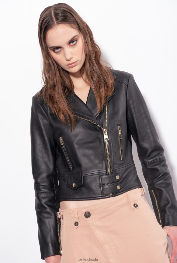 Casual Jackets | Pinko Nappa leather biker jacket LIMO BLACK FTB64L833 Pinko Uk