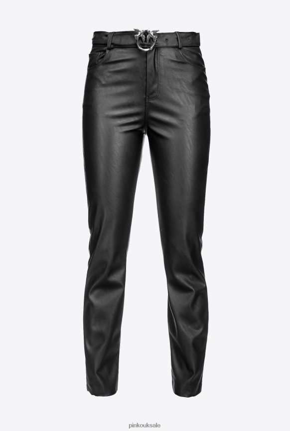 Casual Trousers | Pinko Leather-effect trousers with Love Birds belt LIMO BLACK FTB64L710 Pinko Uk