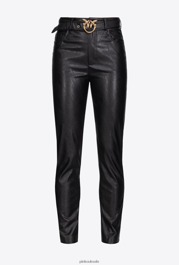 Casual Trousers | Pinko Leather-effect trousers with Love Birds belt LIMO BLACK FTB64L785 Pinko Uk