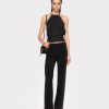 Monochrome stretch crepe trousers with flared legs. High-waisted, with golden side buttons and slanted front pockets. Concealed central zip fastening on the back. – Model is 175cm tall and wears a size 40.