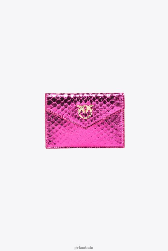 Clutch Bags | Pinko Galleria Flat card holder in laminated reptile skin FUCHSIA-SHINY GOLD FTB64L1172 Pinko Uk