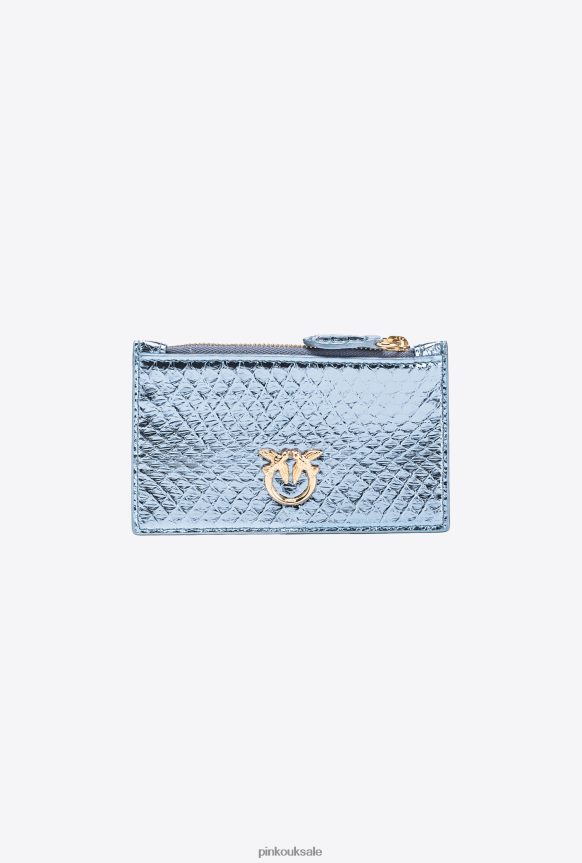 Clutch Bags | Pinko Galleria zipped card holder in laminated reptile skin LIGHT BLUE-SHINY GOLD FTB64L1179 Pinko Bags Uk