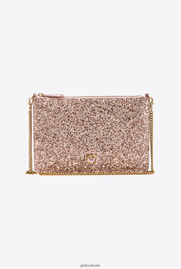 Crossbody Bags | Pinko Glittery Classic Flat Love Bag DUSTY PINK-ANTIQUE GOLD FTB64L1200 Pinko Bags Uk