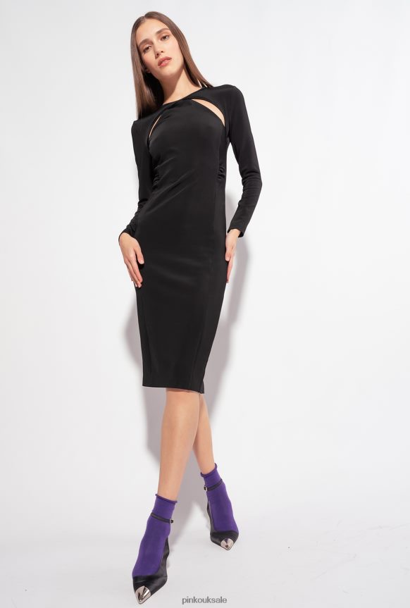 Long Dresses | Pinko Fluid neoprene calf-length dress LIMO BLACK FTB64L96 Pinko Bags Uk