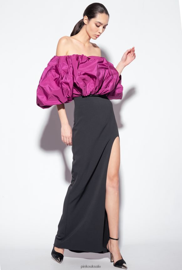Long Dresses | Pinko Galleria taffeta dress BLACK/PURPLE FTB64L213 Pinko Bags Uk