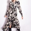 Long Dresses | Pinko Graphic floral shirt dress TURQUOISE/BUTTER/BLACK FTB64L52 Pinko Dress Uk