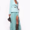 Long and elegant taffeta skirt with waist belt. Loose-fitting and complete with large pleats, split and inset side pockets. This garment is part of the “Dress to Impress” partywear capsule collection.