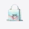 Rounded-edge Micro Love Bag Bell in rainbow glitter fabric. This textile material is spray-dyed and then coated with a special glue to adhere the glitter colour, in turn, creating a “glazed” effect. As the treatment is very delicate, please try to avoid rubbing the surface, so as not to dislodge the glitter. The fastening is embellished with the iconic metal Love Birds Diamond Cut buckle. The accessory also comes with a top handle and a removable thin chain shoulder strap, complete with adjustable shoulder padding. The buckle and chain boast distinctive nuanced detail, obtained by means of a special dye bath: the individual components are immersed, one by one, in the dye solution for a few seconds, and for this reason, may have a different end result, which in turn, makes each product unique. The bag is part of the Limited Edition special capsule collection which comprises PINKO Galleria-exclusive limited-edition models. Use the special NFC chip to enjoy a special experience, specific to the bag you have just bagged!