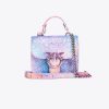 Micro Love Bag One in laminated ayers leather. This fine exotic leather boasts a python scale-reminiscent pattern. The material is naturally carved and, therefore, may have some imperfections, which add value, as far as the bag’s uniqueness is concerned. The strap fastening is completed by the pave rhinestone-embellished iconic metal Love Birds Diamond Cut buckle. The shoulder strap combines the classic round-link chain with a practical, adjustable leather pad. The bag is part of the Limited Edition special capsule collection which comprises PINKO Galleria-exclusive limited-edition models. Use the special NFC chip to enjoy a special experience, specific to the bag you have just bagged!