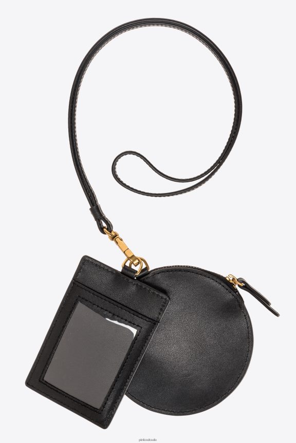 Microlove Bags | Pinko Leather neck pouches BLACK-ANTIQUE GOLD FTB64L1258 Pinko Dress Uk