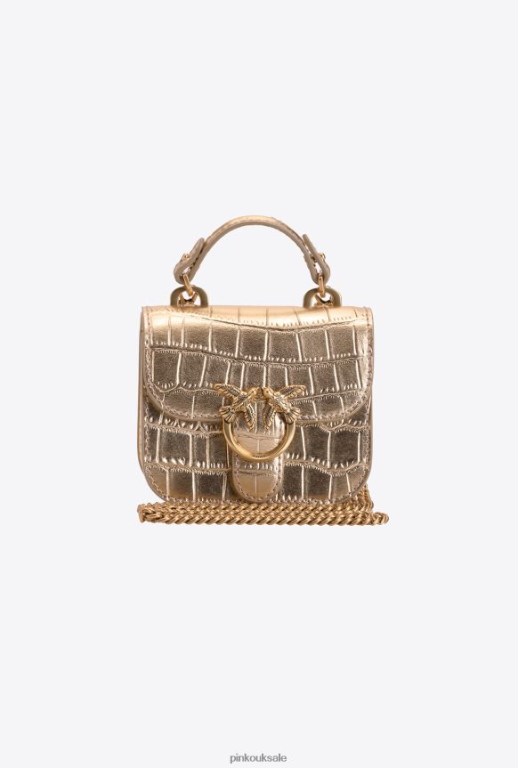 Microlove Bags | Pinko Micro Love Bag Bell Croco ANTIQUE GOLD FTB64L1237 Pinko Dress Uk