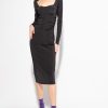 Long Dresses | Pinko Fluid neoprene calf-length dress LIMO BLACK FTB64L96 Pinko Bags Uk