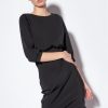 Midi dress in neoprene-look technical viscose fabric. Loose-fitting top part, with round neck and three quarter-length sleeves with cuff. Snug-fitting, figure-flattering sheath skirt. Concealed central zip fastening on the back.