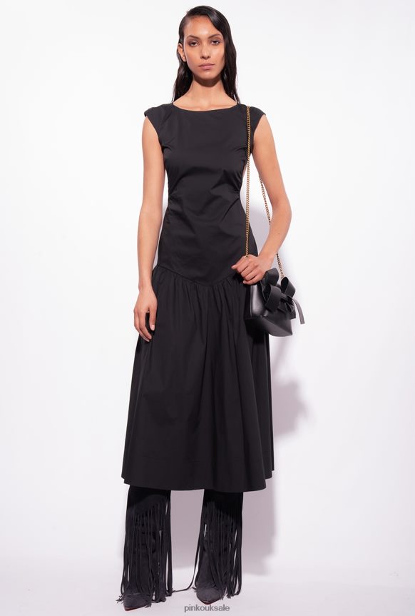 Mid-Length Dresses | Pinko Poplin dress with open back LIMO BLACK FTB64L158 Pinko Uk