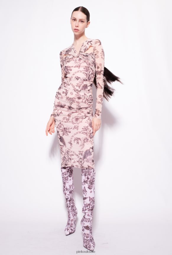 Mid-Length Dresses | Pinko Slim-fit tattoo-print dress NUDE/BLACK FTB64L163 Pinko Dress Uk