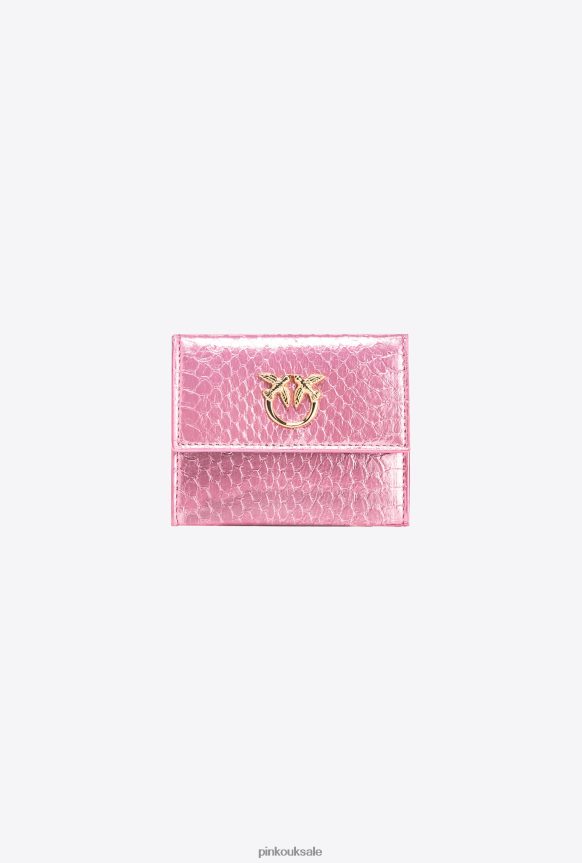Purses | Pinko Galleria compact purse in laminated reptile skin POWDER PINK-SHINY GOLD FTB64L1168 Pinko Dress Uk