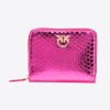 Square zip-around purse in laminated ayers leather. This fine exotic leather boasts a python scale-reminiscent pattern. The material is naturally carved and, therefore, may have some imperfections, which add value as far as uniqueness is concerned. Customised with a leather base-set Love Birds Diamond Cut plaque. Zip fastening. The accessory is part of the Limited Edition special capsule collection which comprises PINKO Galleria-exclusive limited-edition models.