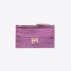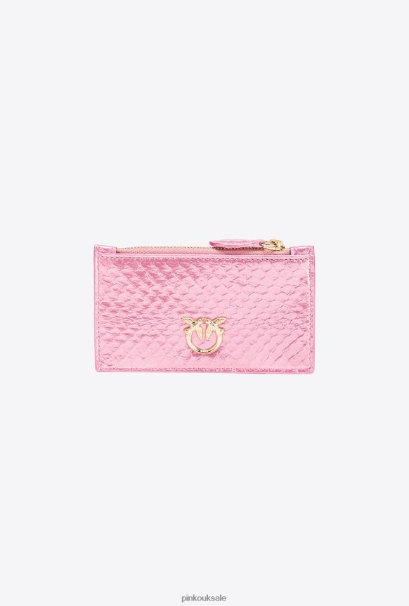 Purses | Pinko Galleria zipped card holder in laminated reptile skin POWDER PINK-SHINY GOLD FTB64L1178 Pinko Uk
