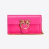 Love Bag Wallet with shoulder strap in soft, silky leather. The concealed-button closure is embellished with the iconic metal Love Birds Diamond Cut buckle. This accessory has microfibre lining, a zipped centre divider pocket and card slots. The removable, round-link metal-chain shoulder strap allows you to wear the purse like a crossbody bag.