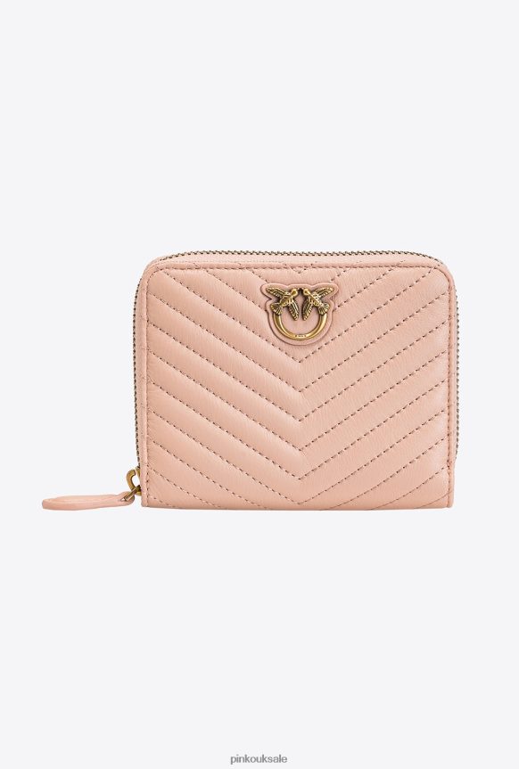 Purses | Pinko Small zip-around wallet in chevron-patterned nappa DUSTY PINK-ANTIQUE GOLD FTB64L1138 Pinko Dress Uk
