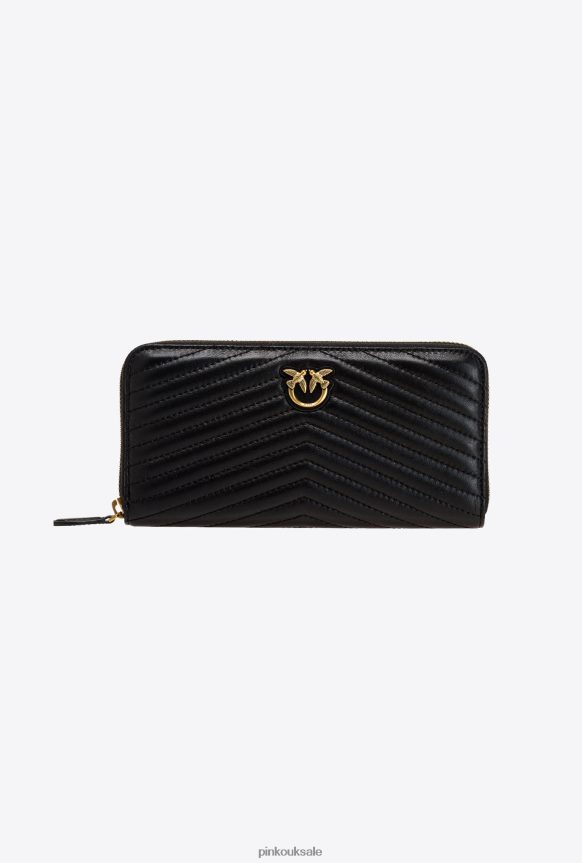 Purses | Pinko Zip-around purse in chevron-patterned nappa leather BLACK-ANTIQUE GOLD FTB64L1155 Pinko Bags Uk