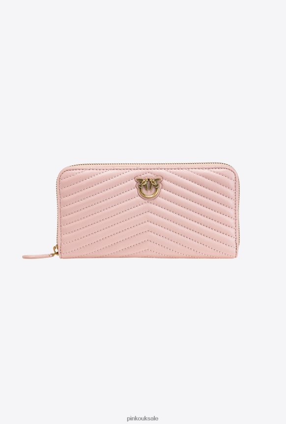 Purses | Pinko Zip-around purse in chevron-patterned nappa leather DUSTY PINK-ANTIQUE GOLD FTB64L1154 Pinko Uk