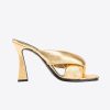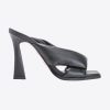 Slip-on sandals in soft Nappa leather with padded criss-cross straps. Square toe and a leather sole with a 10 cm heel. Leather insole.
