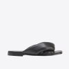 Soft nappa leather slip-ons with square, open toe with padded crossover straps on the front. Flat 2-cm heel. Rubber insole and leather sole.