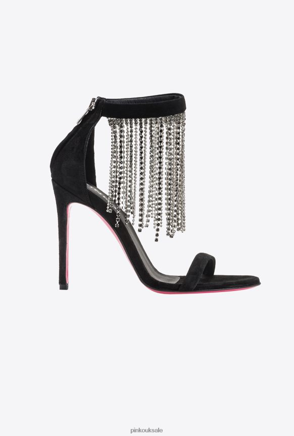 Sandals | Pinko Sandals with rhinestone fringing LIMO BLACK FTB64L1095 Pinko Bags Uk