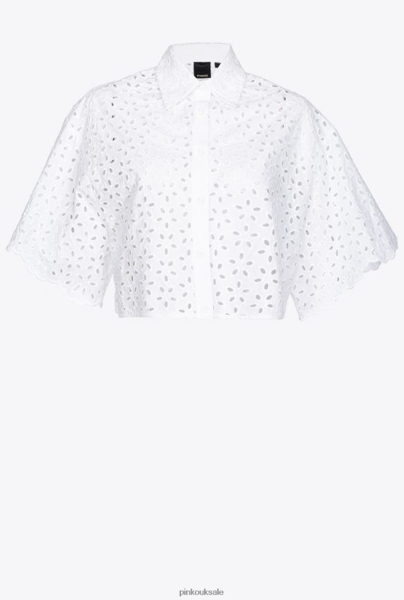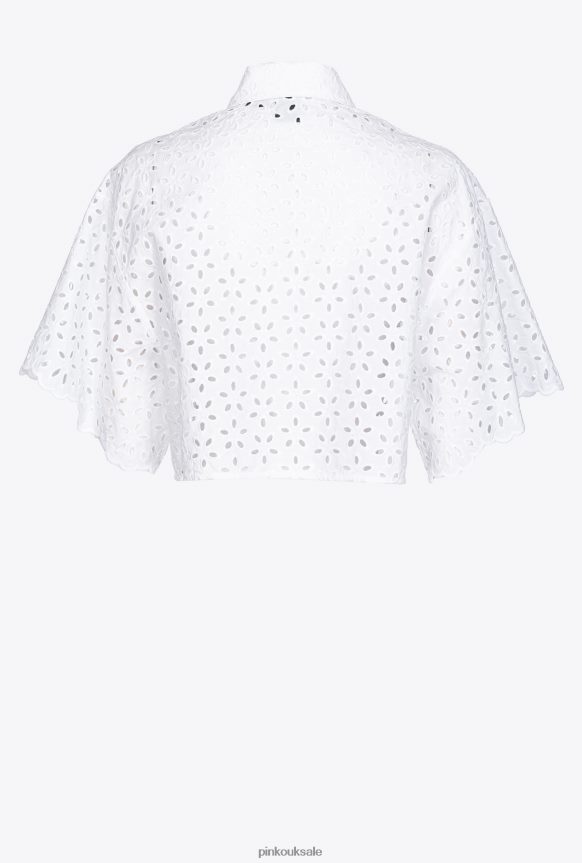 Shirts | Pinko Cropped broderie anglaise shirt BRIGHT WHITE FTB64L286 Pinko Dress Uk